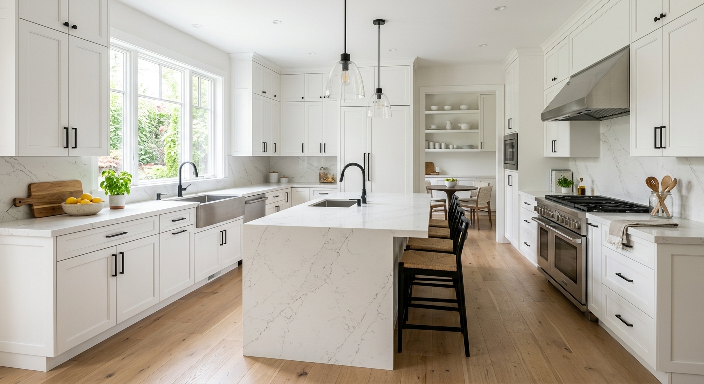 Granite, quartz, bois massif — installation de comptoirs et îlots à Saint-Anicet.